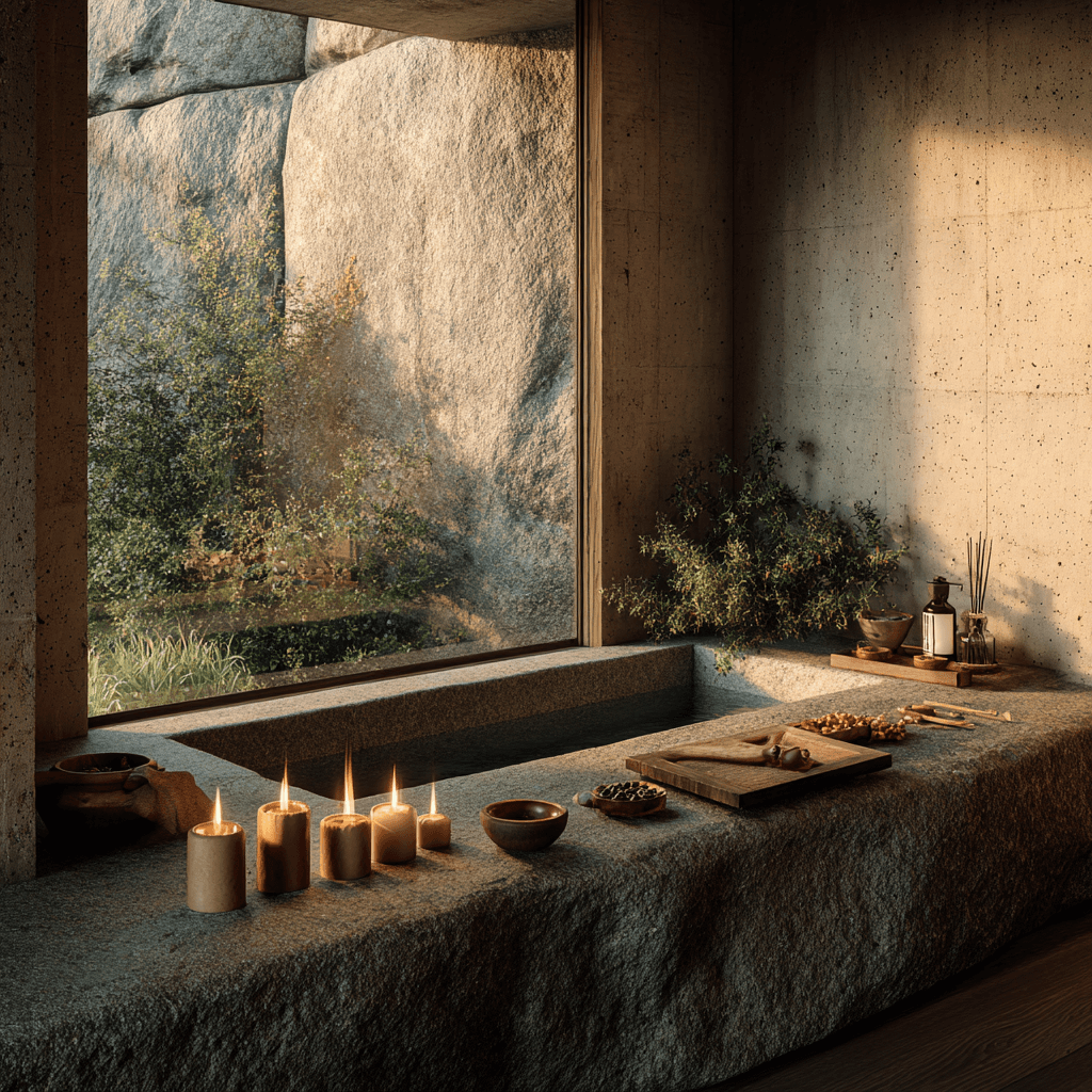 Brutalist serenity carved into a snowy landscape